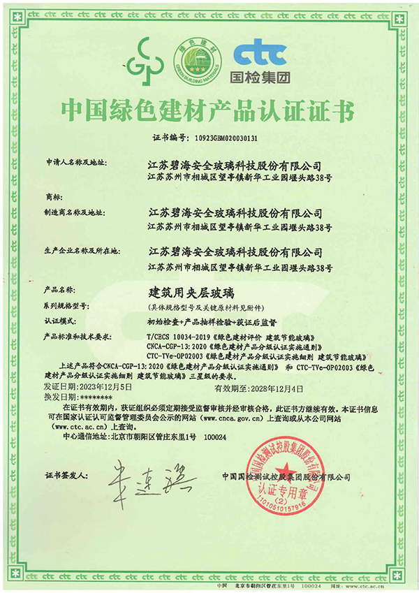 中国绿色建材产品认证证书
