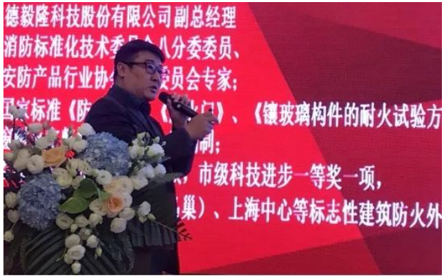 浙江德毅隆科技股份有限公司副总经理,全国消防标准化技术委员会八分委委员,中国安防产品行业协会专家委员会专家张明罡发表演讲--《建筑用门窗幕墙防火系统-非金属框系统》。