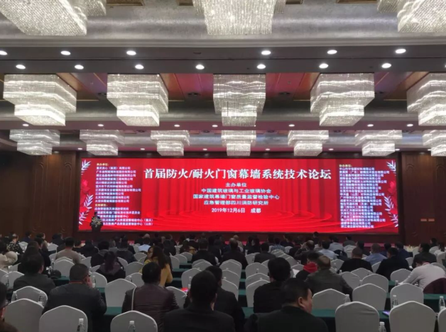 2019年12月6日,防火/耐火门窗幕墙系统技术论坛会议在成都盛大召开。本次论坛会议由中国建筑玻璃与工业玻璃协会、国家建筑幕墙门窗质量监督检验中心、应急管理部四川消防研究所主办,重庆美心(集团)有限公司、湖北金晶格林特种玻璃有限公司、四川佛能达科技有限公司、江苏碧海安全玻璃科技股份有限公司、北京海阳顺达玻璃有限公司、广东金刚玻璃科技股份有限公司、东莞市银建玻璃有限公司、宜兴市于式特种玻璃有限公司、江苏福坤玻璃有限公司、大连华鹰玻璃股份有限公司承办,19家单位共同协办。