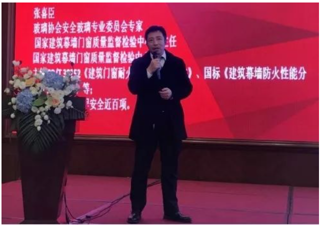 玻璃协会安全玻璃专业委员会专家,国家建筑幕墙门窗质量监督检验中心副主任,国家建筑幕墙门窗质量监督检验中心总工张喜臣发表演讲--《建筑门窗耐火完整性试验方法》